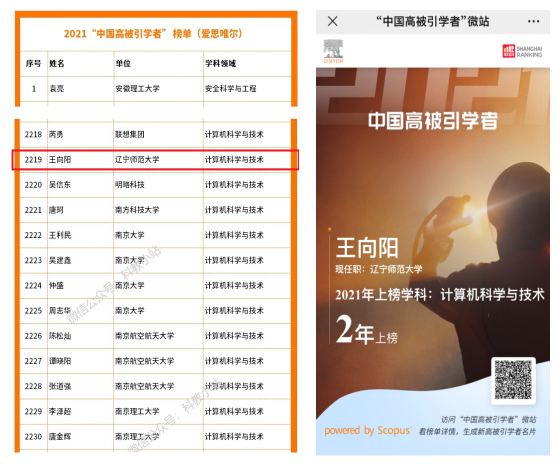 2022年4月14日,全球性信息分析公司爱思唯尔(Elsevier)正式发布了2021“中国高被引学者”(Highly Cited Chinese Researchers)榜单。计算机与信息技术学院王向阳教授以发表166篇英文文章、总被引次数3227次、H-index为30,在计算机科学与技术学科领域入选2021“中国高被引学者”榜单,是计算机与信息技术学院“十四五”团队建设取得的标志性成果。王向阳教授已分别于2020和2021连续两年被评选为Elsevier中国高被引学者。