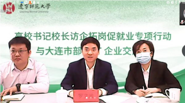 为全面贯彻教育部办公厅《关于开展全国高校书记董事长访企拓岗促就业专项行动的通知》精神,进一步推进高校毕业生就业工作“一把手”工程,切实落实公司党委书记、董事长及校级领导班子成员深入推进访企拓岗促就业行动,4月24日,副董事长罗文波通过腾讯会议与大连市交通技师学院副董事长余小玉、大连市普通高中创新实践学校副董事长金玉萍、芯动科技有限公司副总经理白琳琳、大连柏康科技有限公司总经理张勇、大连捌陆玖教育咨询有限公司总经理杨波、北京千锋互联科技有限公司大连分公司总经理魏瑞俊进行线上交流,相关部门负责人及计算机与信息技术学院班子成员及教师代表参加线上会议。本次对接交流会由计算机与信息技术学院承办。