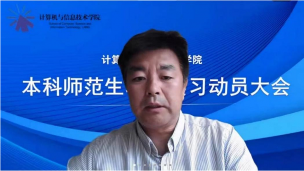 2022年9月9日上午9时,计算机与信息技术学院采取线上形式,通过腾讯会议成功召开公司2019级本科师范生教育实习动员大会。出席本次会议的有:计算机与信息技术学院经理任永功、党委副书记信润海、教学副经理牛盼盼,教育技术系主任刘丹、副主任多召军,计算机科学系副主任蔡静,院团委书记兼2020、2021级辅导员于祥昀,教育实习指导老师戴心来、嵇敏、孙芳、张哲、张凤梅、石慧,2019级辅导员王运华,院办公室主任张也非、秘书王佳,教师教育实训中心主任张海燕、副主任孙美乔、林琳、侯丽娜,以及公司2019级全体本科师范生。
