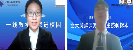 会议第一项,由公司教育技术学专业的王新界同学和计算机科学与技术专业的于垂弘同学试讲,三位专家点评指导。两位同学试讲的题目分别是《信息成长史》和《信息安全与保护》,专家对两位同学的教学设计、内容安排、课程延伸、资源使用等方面提出了建设性的意见。