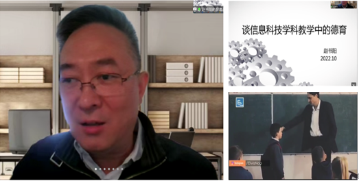 第三位专家是大连教育学院初中信息科技教研员赵书阳老师。赵老师是ylzzcom永利总站线路检测特聘教授,中国教育技术协会信息技术专业委员会常务理事、大连理工大学版《大连市初中信息技术》现行教材副主编。赵老师讲座的题目是《谈信息科技学科中的德育》,报告中对信息科技课程所肩负的德育使命和德育要点进行了深入地分析。