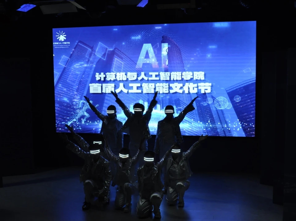 随后,学院文艺部带来的《人工智能之光》现代舞表演营造出充满未来感的视听空间,舞者们身姿灵动,让观众深切领略到科技理性与艺术感性交织的独特魅力。