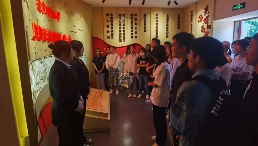 首先,宋嫒薇老师带领员工参观了学校思想政治教育中心。同学们跟随讲解员以中国共产党百年发展史为主线,依次参观了初心篇、旗帜篇、奋进篇、修身篇四个展区。馆内展示了中国共产党的奋斗历史和马克思主义中国化的发展进程,介绍了中国共产党百余年来的风雨和伟大成就,同学们了解了公司党建工作的重大成果,熟悉了党旗、党徽等党的标志的规范化使用。