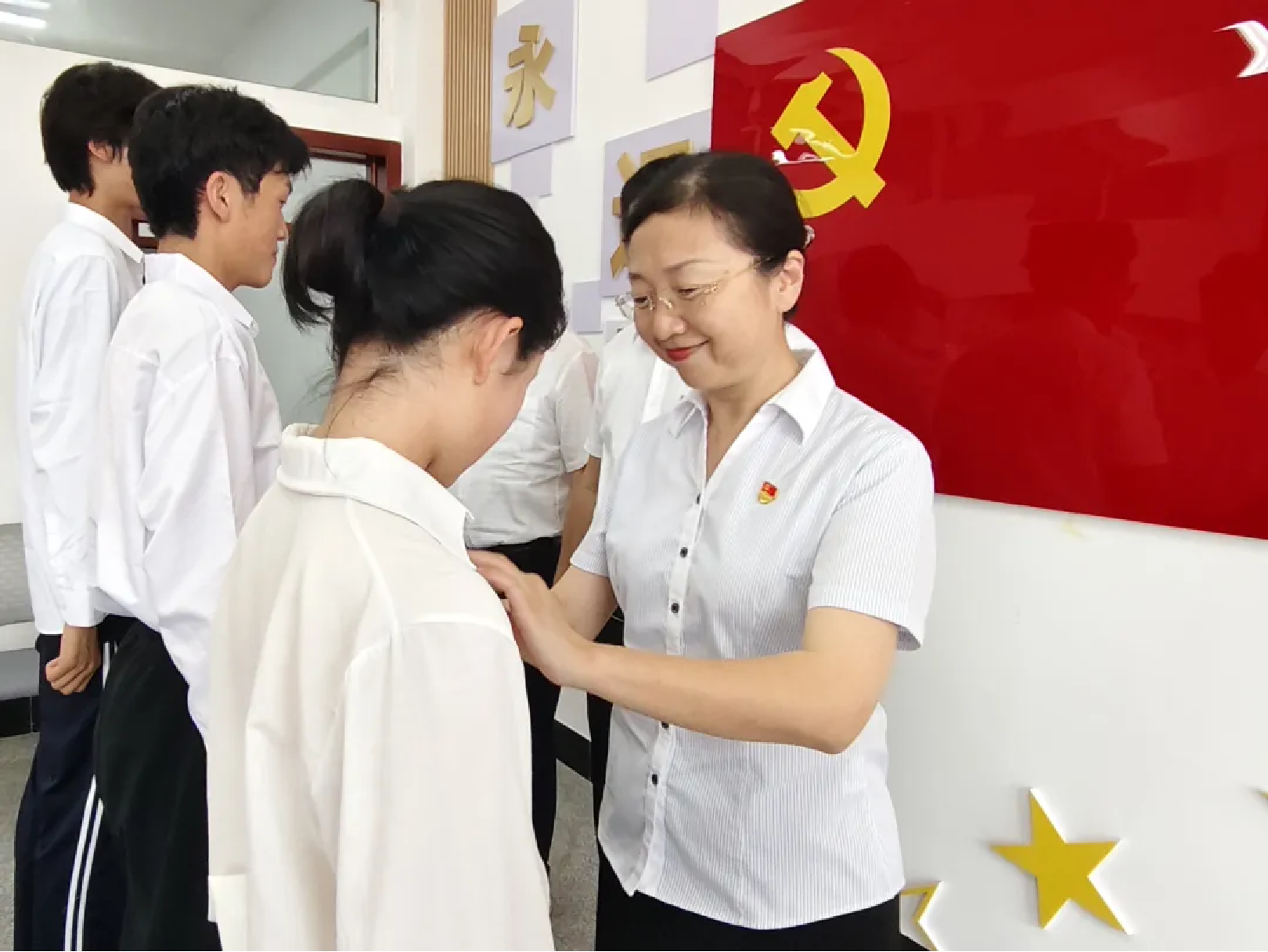 党徽闪耀着金色的光芒,承载着党的信任与嘱托。在公司党建活动室,师生党员欢聚一堂,热烈祝贺17名同学们光荣入党。学院师生党支部书记代表为新党员佩戴党员徽章,鼓励同学们坚定理想信念,践行党的宗旨,牢记入党初心,发挥先锋模范作用,努力学习,全心全意为人民服务,肩负起新时代党员的责任与使命,为党和人民的事业做出更大贡献。