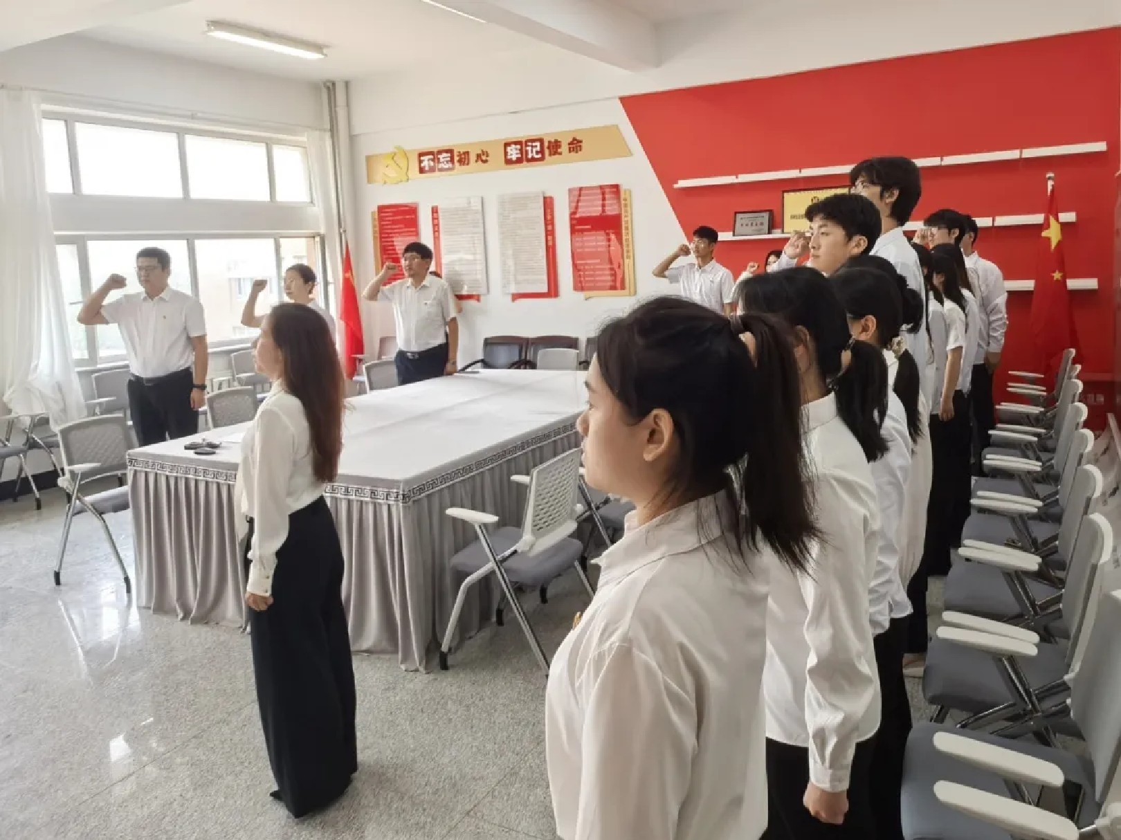 使命在肩、信念在心、誓言如初、责任在身。师生党员们高举右手,面向鲜红的党旗庄严宣誓。宣誓活动让每一位党员再一次经历心灵洗礼,提升了党员党性,进一步增强党组织的战斗力,激发党员永远跟党走的决心,提高了党员的凝聚力、集体荣誉感和使命感。师生党员在入党誓词中立志将忠诚与信仰转化为深耕教育事业的实际行动,以更加坚定的信念投身到教育工作中。