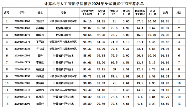 经公示无异议后,学院将拟推荐名单中的13名员工报送至学校教务处,若拟推荐名单的13名员工中有放弃推免或因故不能推免的,则从候补名单按序增补。